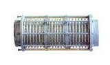 1.軸向型波紋膨脹節(jié) 普通抽向型 是基本的軸向膨脹節(jié)結(jié)構(gòu)。其中支撐螺母和預(yù)拉桿的作用是支撐膨脹節(jié)達(dá)到最大額定拉伸長度和到現(xiàn)場安裝時(shí)調(diào)整安裝長度(冷緊)。如果補(bǔ)償量較大,可用兩節(jié),甚至三節(jié)波紋管。使用多節(jié)時(shí),要增加抗失穩(wěn)的導(dǎo)向限位桿。 抗彎型 增加了外抗彎套筒,使整體具有抗彎能力。這樣可以不受支座的設(shè)置必須受4D、14D的約束,支架的設(shè)置可以將這段按剛性管道考慮。 外壓型 這種結(jié)構(gòu)使波紋管外部受壓,內(nèi)部通大氣。
